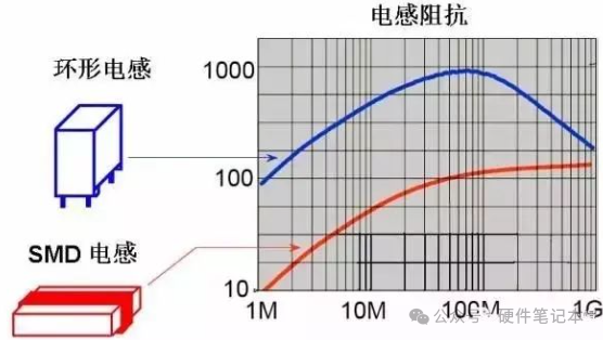 与电阻和电容相同,电感的高频特性同样与理想电感的预期特性不同,如下图所示:首先,当频率接近谐振点时,高频电感的阻抗迅速提高;第二,当频率继续提高时,寄生电容C的影响成为主要的,线圈阻抗逐渐降低。