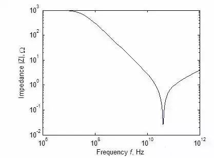 一个典型的1pF电容阻抗绝对值与频率的关系