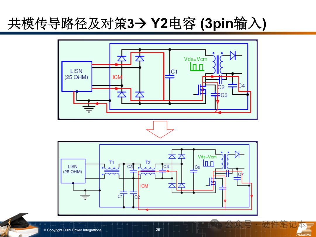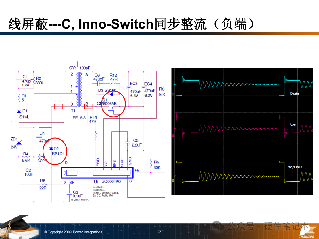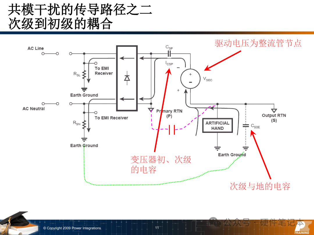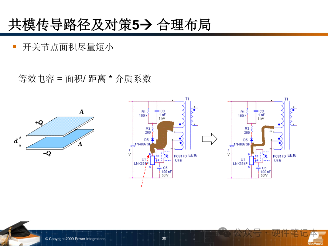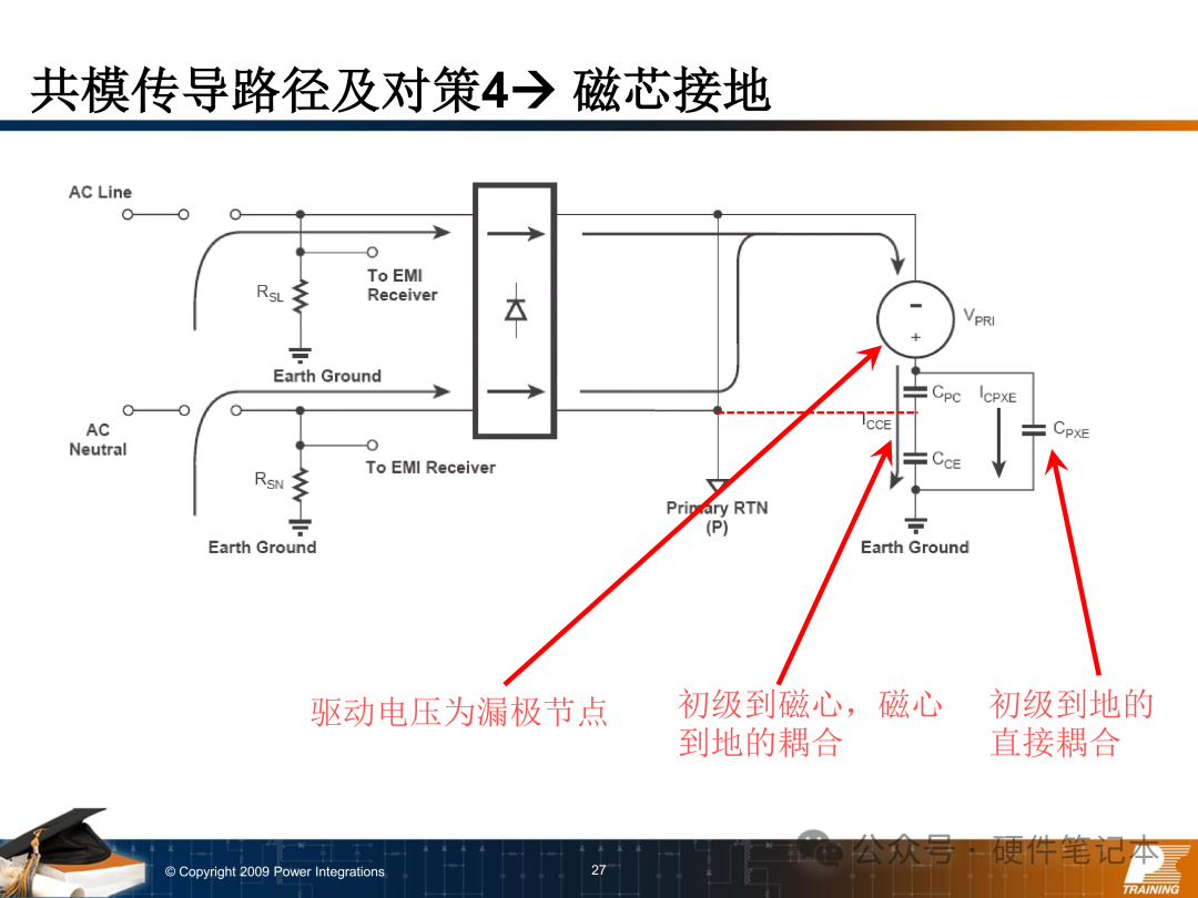 前几天收到一台客户提供的竞品机器,电路板方面客户希望我们抄板,目前这个电路板方案已经出货100K以上了,品质很稳定,客户希望我们照抄设计,仔细看了样机的电路板后,发现成本控制的很好,而且设计有点意思。以下是我抄板的图纸,截取部分原理图,欢迎大家来讨论分析下工作原理和各个部件的作用,以及为什么要这么设计?以下我将尝试对该电路设计进行工作原理分析,在这里我将尝试从最基础的讲解,用最通俗的语言来阐述(老鸟们不要嫌我啰嗦),阐述的不好的地方请各位大佬尽情的喷我,欢迎指正。言归正传,先上原理图:先说阻容降压部分,R8,C2,D2,D3,ZD1,ZD2构成常见阻容降压电路,交流电经过半波整流阻容降压后,在两个稳压管ZD1,ZD2两端形成11.2V左右的直流电压(这个电压是提供给后面的12V继电器使用的)。阻容降压电路交流电的正负半周的电流流向分别如下:交流电正半周电流流向交流电负半周电流流向负半周时,D2为C2提供交流通路,D3起到隔离单向截止的作用。阻容降压电路还是比较简单的,下面讲系统电源的供电电路。单片机系统供电为5V,Q2和ZD2组成5V稳压电路,Q2的发射极电压跟随基极电压,基极电压被钳位在5.6V。所以相对于GND1这个参考电位来说,Q2发射极电压为6.3V,因为Q2发射极的电压约为0.7V。我们知道ZD1,ZD2两端的电压为11.2V.根据原理图,稳压管ZD1,ZD2支路是和Q2、EC2这两个器件串联后的支路并联在一起的。分别是下图的支路1和支路2:支路1的电压为已知的11.2V。支路2中Q2的集电极和发射极的电压为上面已知的6.3V。可得知EC2上面的电压为11.2-6.3=4.9V。好了,至此,我们明白了单片机 VCC电压是如何产生的了。以下图片电流流向很好的说明了VCC是如何产生的。最终EC2上的电位差为4.9V下面来讲讲过零检测电路,在该方案中,过零检测信号是用来给单片机计时用的,一般来说,只要过零检测电路滤波做的好,软件处理的好,计时精度还是能让人满意的。一般情况下会比单片机的内震计时精度要高。我们看电路,D1,R2,R6,Q1组成过零检测电路,交流电正半周时,Q1会导通,交流电的负半周时,Q1会截止。这样在单片机的PA6口就能检测到一个高低跳变的方波,在交流电经过零点的时刻,波形会跳变(波形如下),我们知道,电网频率是固定的,也就是说每个周期内交流电经过零点的次数是固定的,根据这个道理,计数一定时间内的过零点的数量就能准确的算出经过了多少周期,以上,单片机就是通过这个方法来计时的。方波为过零信号,正弦波为交流电波形交流电正半周时的电流通路交流电负半周时的电流通路,此时Q1截止上图中D1的作用为,在交流电的负半周时,防止Q1的发射结反向击穿,因为三极管的发射结的反向耐压一般只有几伏。加入D1后,负半周时,发射极会被D1给钳位为0.7V,从而保证了Q1发射结的安全。这电路巧妙的地方,用两个稳压二极管人为的制造了两个电压,一个大概5v,一个大概12V,Q2的作用是利用稳压管稳住基极电压来稳住发射级电压,和一个稳压管相比,最大的作用是增加电流。以上就是今天的分享,因时间仓促,水平有限,写的不准确的地方请大佬们批评指正。最后,写文不易,请大家帮忙点赞分享,谢谢你们的支持!声明: 声明:文章转载来自:喝枸杞论电子(头条)。本号对所有原创、转载文章的陈述与观点均保持中立,推送文章仅供读者学习和交流。文章、图片等版权归原作者享有,如有侵权,联系删除。 来源:硬件笔记本