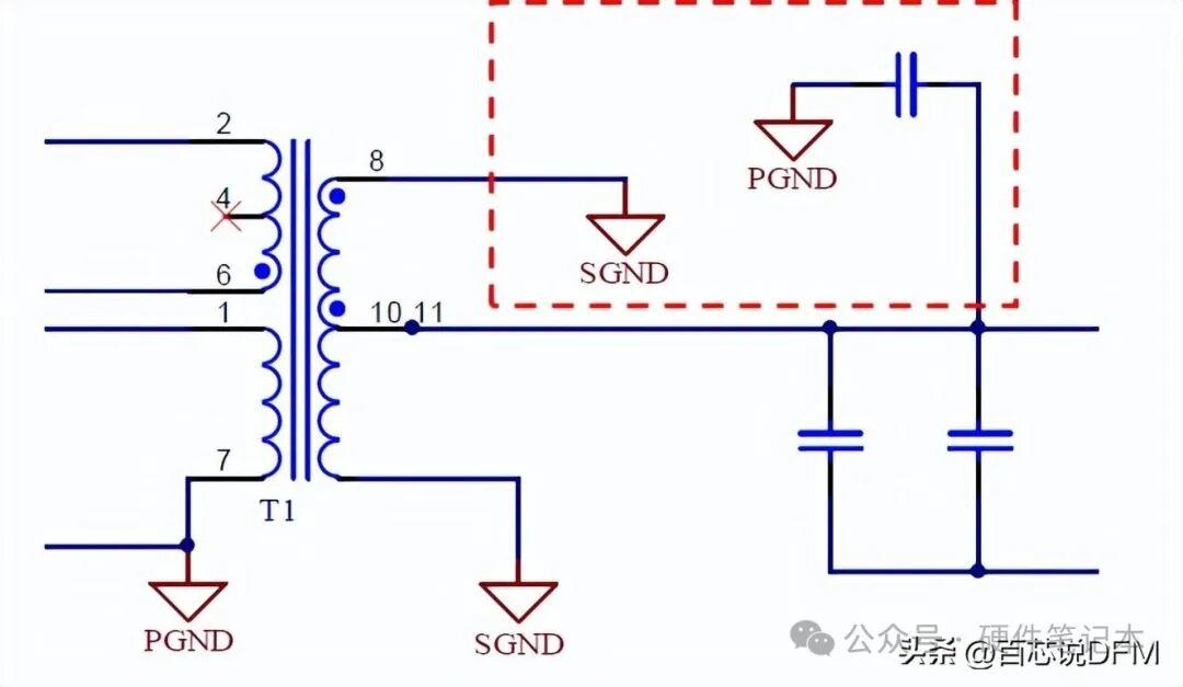 在电源系统中,要注意如何使用电容接地以确保接地参考保持一致。Y级电容最合适,你需要消除平面之间的直流偏移,同时提供电流隔离和高频EMI 滤波。