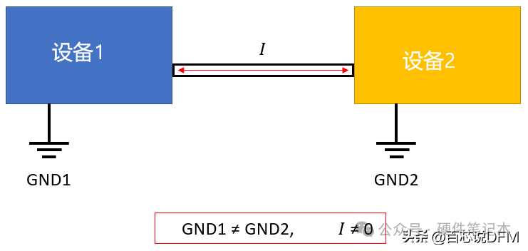 悬空的导体或者系统中参考不同电源的导体可能不具有相同的 0 V 电位。换句话说,两个不同的设备有两个接地参加,但连接到同一个参考,如果你测量它们之间的电位,测量得到是一个非 0电压。
