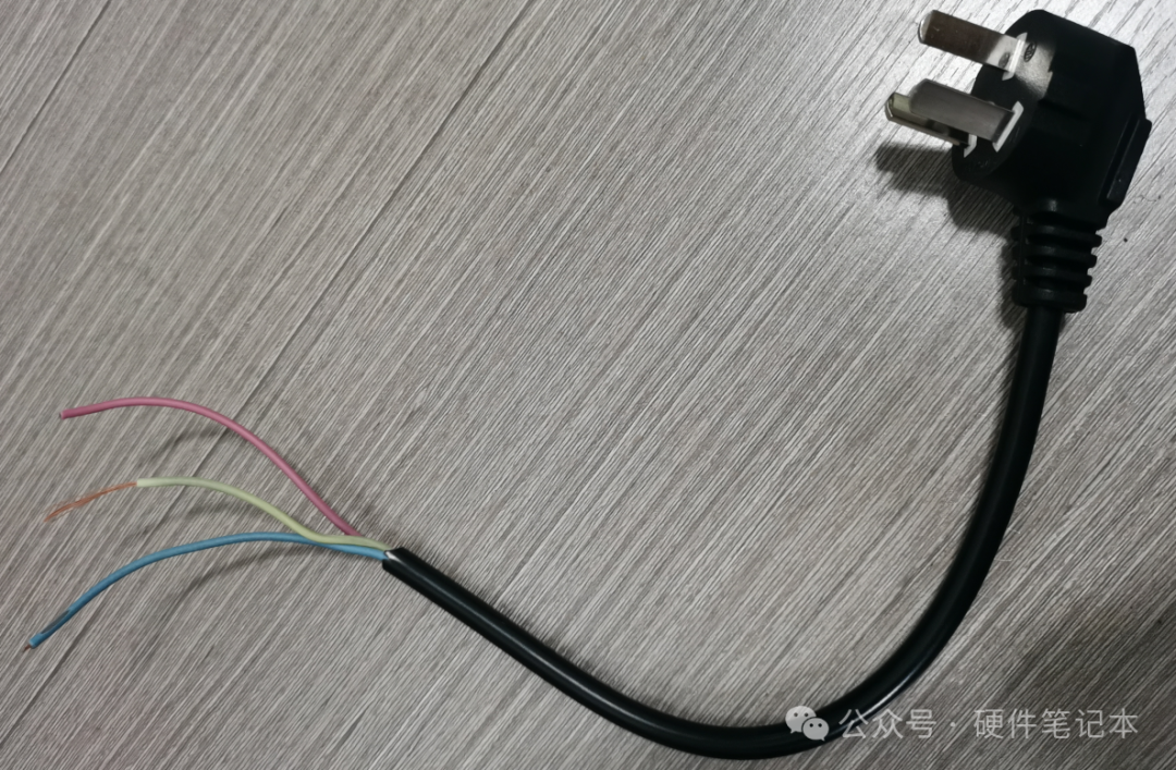 还有一根AC220V品字头电源线,跟适配器一起配套的,线摸起来特别软,我忍不住把它给拆了,果然,线表面的绝缘皮用手轻轻一扯就掉了,估计就值2块钱吧。还配有一根VGA线,接上了不好取,我就没拍照了。
