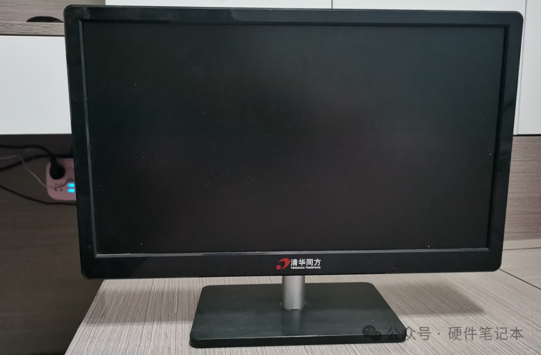 外观先来个特写,虽是二手的,但看起来还是比较干净。细心的小伙伴可能会发现这个牌子是清华同方,印象中这类显示屏在咱小学上微机电脑课的时候用的比较多,现在很少见到了。