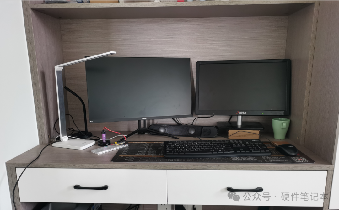 很快显示屏到货了,跟咱去年买的27寸屏放在一起,一大一小,还比较和谐。(左边为27寸,左边为刚买的17寸)