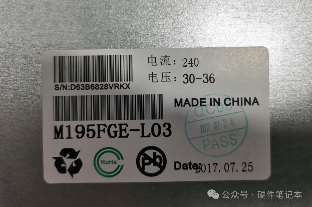 再看看这个屏上的标签,型号为M195FGE-L03,厂家是群创光电,他们做屏这块也是蛮久的了,价格在450元左右,毫无疑问,裸屏就是整个成本的大头了。可以看到这个屏背光的电流典型值是240mA,电压为30~36V。