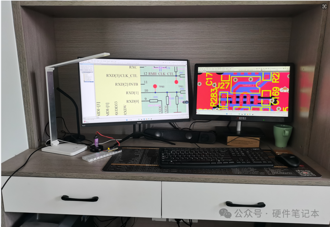 通电开机,左边显示原理图,右边显示PCB,这感觉就很爽,哈哈哈,接下来咱们把它拆开看看。