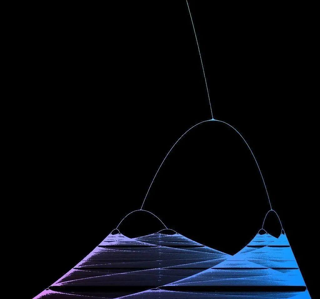 这是由 logistic 映射得到的 Feigenbaum 分岔图。和刚才一样,对应的代码也巧妙地利用了宏定义来节省字符: