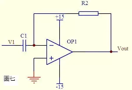 则:Vout=-i*R2=-(R2*C1)dV1/dt