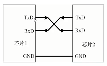 对于两个芯片之间的连接,两个芯片GND共地,同时TXD和RXD交叉连接。这里的交叉连接的意思就是,芯片1的RxD连接芯片2的TXD,芯片2的RXD连接芯片1的TXD。这样,两个芯片之间就可以进行TTL电平通信了。STM32与51单片机串口通信相关实例,请移步此处:STM32与51单片机串口通信实例。