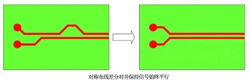 对称布线差分对并保持信号始终平行