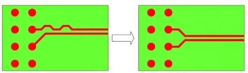 在任何时候,如果可以就一定选择对称出线进而避免需要最终为了等长而进行蛇形走线。