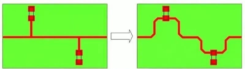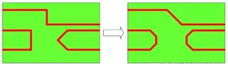 在布高速信号线时,信号线应尽量避免弯曲。如果不得不弯曲走线,则不要锐角或者直角走线,而是应该用钝角走线。
