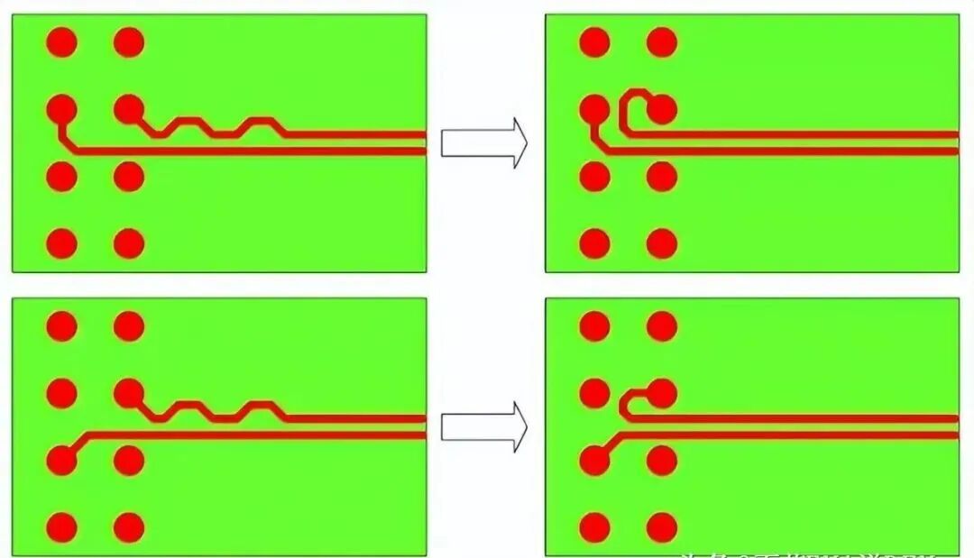 如果空间允许,尽量在短的差分线源头处加一个小的回环来实现补偿,而不是通过蛇形线来补偿。
