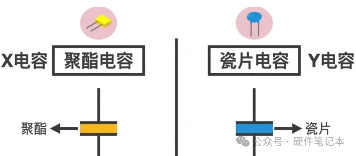 电容有诸多种分类,X电容本质就是聚酯电容,Y电容本质就是瓷片电容