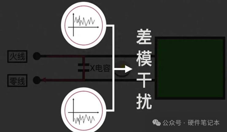 由于火线和零线的干扰是一样的,此时X电容就不起作用