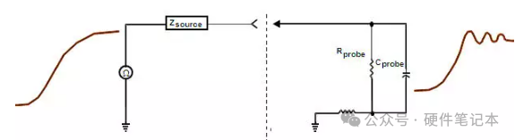 感性负载来源于探头地线的电感效应,这地线电感会与容性负载和阻性负载形成谐振,从而使显示的信号上出现振铃。如果显示的信号上出现明显的振铃,需要检查确认是被测信号的真实特征还是由于接地线引起的振铃,检查确认的方法是使用尽量短的接地线。一般推荐使用尽量短的地线,一般地线电感=1nH/mm。
