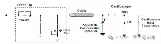 2. 带补偿的高阻无源探头(最常用的无源探头);