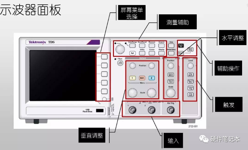一般来说,使用一个模拟示波器,我们主要需要调整三个基本方面,也就是上面说的三个部分:
