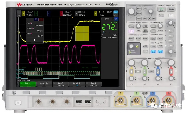 和模拟示波器一样,使用数字示波器来测试,也需要调整垂直幅度、水平时间间隔和触发设置。