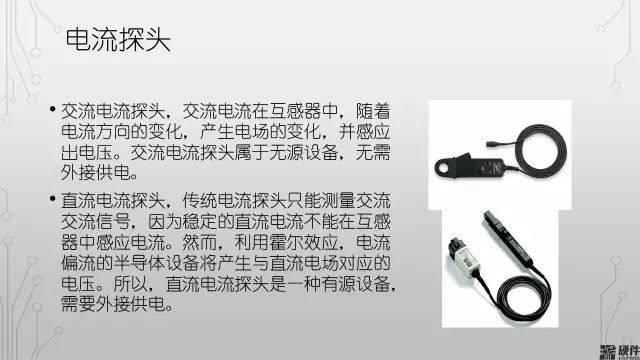 电流探头也是有源探头,利用霍尔传感器和感应线圈实现直流和交流电流的测量。电流探头把电流信号转换成电压信号,示波器采集电压信号,再显示成电流信号。电流探头可以测试几十毫安到几百安培的电流,使用时需要引出电流线(电流探头是把导线夹在中间进行测试的,不会影响被测电路)。