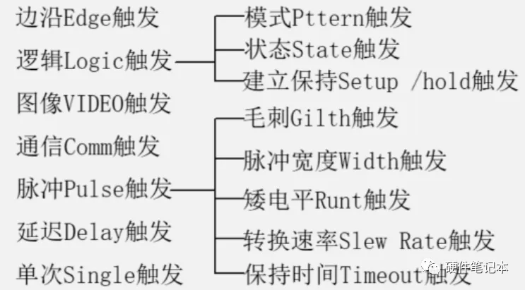 一般示波器的主要触发有: