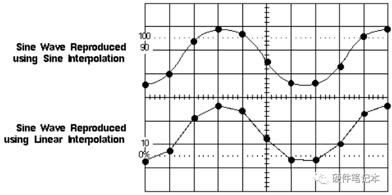 一次按照顺序来采集采样点,然后采用计算方法内插一些数据,内插技术是评估用一些点来组成波形是否和原来的图像的靠近程度,一般的内插技术(waveform interpolation)有线性和sin(x)/x两种。