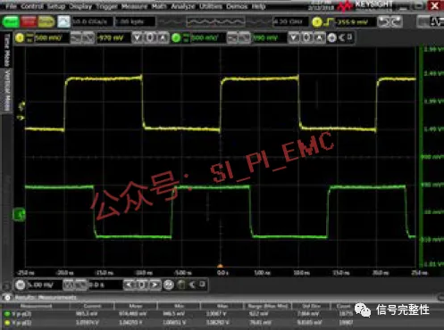 4、通过对比参考波形,通道1的波形,和连接探头的通道2的波形,就可以直观的看出或通过测试参数读出三者的差别,可以验证探头和探头附件的影响。