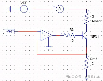 运放电路搭建如下,根据运放的“虚短”,可以得知:I = Vref / Rref。