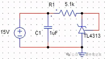 首先我们需要搭建一个基准电压,这个可以使用经典的TL431芯片搭建,如下图所示: