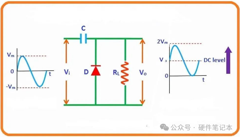 对于钳位电路,至少需要三个元件——二极管、电容和电阻。有时还需要一个独立的直流电源来引起额外的转变。钳位电路的要点是: