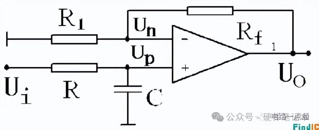 按频率特性分,滤波器分低通、高通、带通、带阻、全通。LC滤波器一般用于高频电路,RC滤波器一般用于低频电路。例:一阶低通有源滤波器如下图所示。