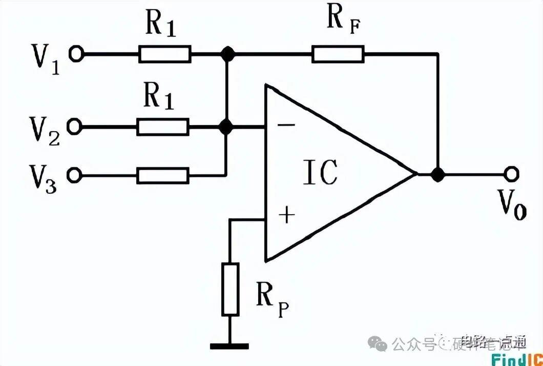 平衡电阻Rp= Rf// R1// R2// R3。