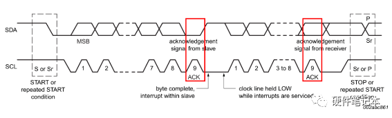 I2C数据总线传输要保证在SCL为高电平时,SDA数据稳定,所以SDA上数据变化只能在SCL为低电平时