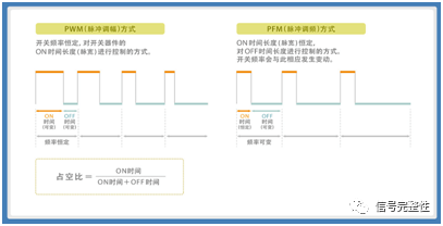 图2:PWM(脉冲调幅)方式与PFM(脉冲调频)方式