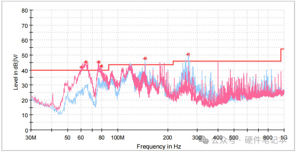 单位为dBuV/m,表示噪声强度,dB(分贝)是个比值