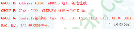 Address/Command 、Control与CLK归为一组,因为它们都是以CLK的下降沿由DDR控制器输出,DDR颗粒由CLK 的上升沿锁存Address/Command、Control 总线上的状态,所以需要严格控制CLK 与Address/Command、Control 之间的时序关系,确保DDR颗粒能够获得足够的、最佳的建立/保持时间。