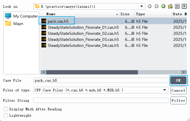 这里需要准备的材料主要是第二步中计算的结果文件和第一步计算无问题的case文件(再次说明第一步计算无问题case的重要性)。