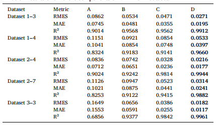 本研究采用公开的PHM2012挑战数据集,对所提方法的性能进行评估。具体实验设置详见表3。为验证该方法的有效性,我们进行了五组实验。评估指标包括均方根误差(Root Mean Square Error, RMSE)、平均绝对误差(Mean Absolute Error, MAE)和相关系数(Correlation Coefficient, R²),具体说明如下: