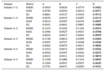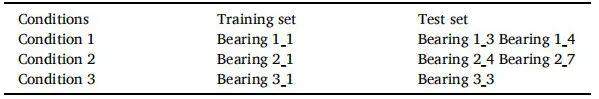为验证该技术的有效性,我们使用公开的XJTU-SY轴承数据集进行了进一步评估。为确保技术的适用性,我们设计了交叉验证实验,实验中使用的数据集详见表6。在不同运行条件下,每个实验选取一个数据集作为测试集,其余两个数据集作为训练集。具体来说,当使用数据集1-1作为测试集时,训练集采用数据集1-2和1-3;反之,当使用1-2作为测试集时,则采用1-1和1-3作为训练集。
