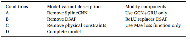 这种协同方法确保了DDSGNet能够捕捉多尺度时空模式,这是单一模块或成对模块都无法实现的。SplineCNN中的B样条核因其Lipschitz连续性提供了稳定的梯度流,而GRU的门控机制则缓解了梯度消失问题,从而实现了损失函数的稳健优化。消融实验验证了这种协同效应,表明与部分配置相比,完整模型在RMSE指标上显著降低,同时在R²指标上表现更优。