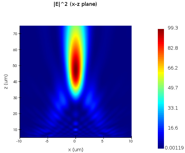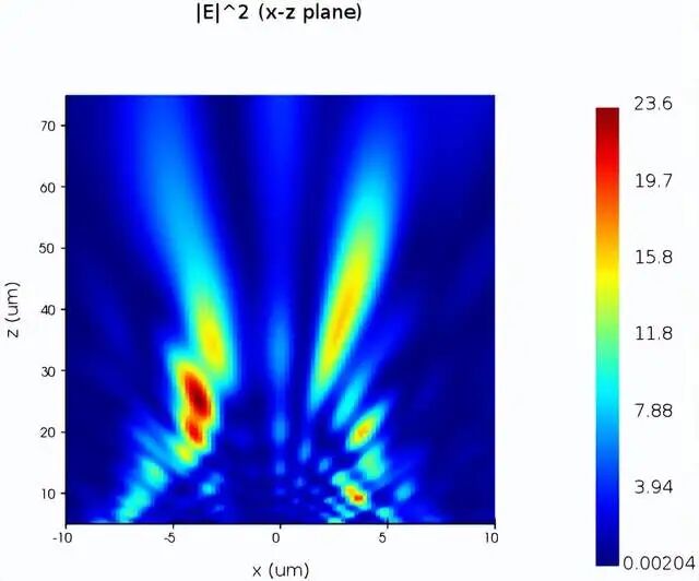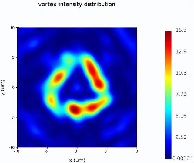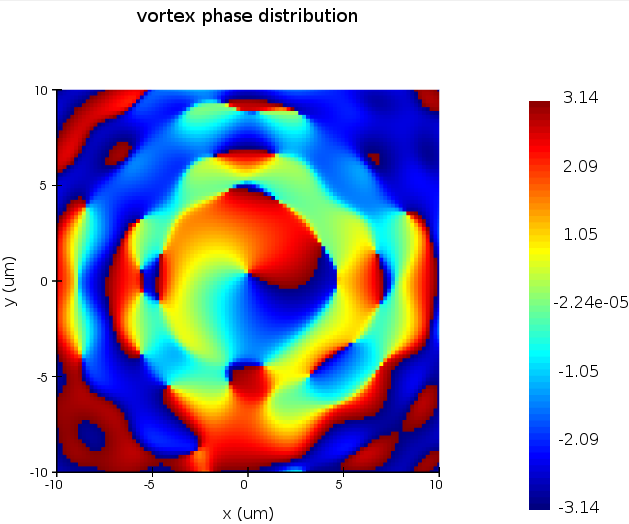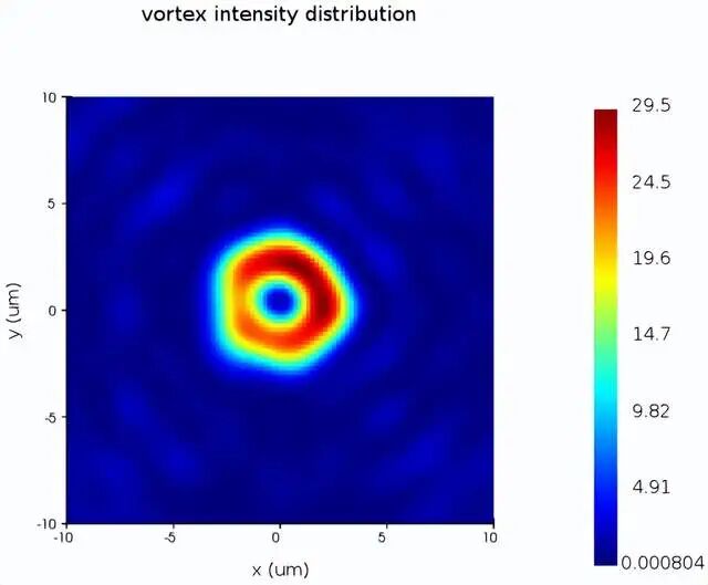 设计参数: | 工作波长:1um 拓扑荷数:1 透镜焦距:50um 透镜半径:10um 入射光:圆偏振光 |