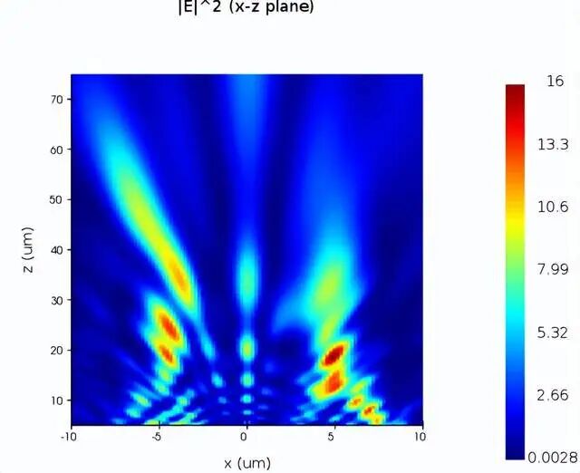 摘要:涡旋光束因携带轨道角动量(OAM)在光通信、量子信息及超分辨显微等领域具有重要应用,但其传统生成方法依赖体光学元件,存在体积大、效率低等问题。基于超表面的涡旋超透镜通过亚波长结构实现波前相位调控,兼具紧凑性与高性能优势。本文基于Lumerical FDTD仿真平台,设计了一种高效生成拓扑电荷数可调的涡旋超透镜。在设计原理上,通过几何相位(PB相位)结合传播相位联合调控,利用二氧化钛(TiO2)纳米柱阵列对圆偏振入射光进行相位延迟,构建满足螺旋相位因子的梯度相位分布(l为拓扑荷数,为方位角)。设计中采用FDTD全波仿真,优化纳米柱尺寸,实现0-2π连续相位覆盖及高透射效率(>80%)。仿真结果表明,所设计超透镜在1um波长下可生成纯度高于90% 的涡旋光束,最后分析超透镜生成的涡旋光束的拓扑电荷数是否符合理论设计。横向尺寸仅为20μm×20μm。该文章为片上集成化OAM器件提供了新思路,可推动高容量光通信与紧凑量子系统的发展