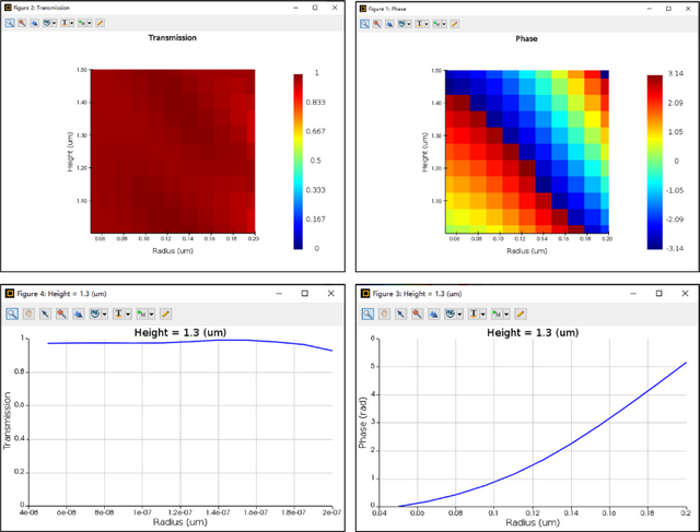 计算TiO2柱子单元的透射率、相位等情况,计算结果如下: