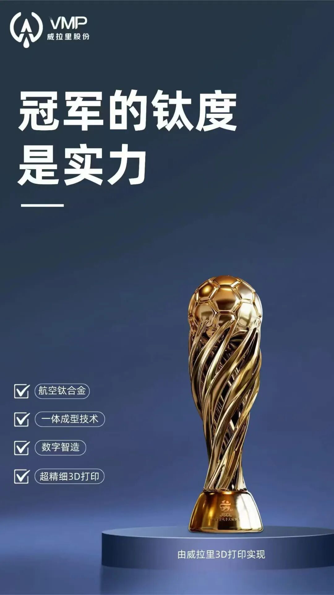 而这场比赛的焦点之一,却是赛场上那座闪耀的冠军奖杯——它并非出自传统工艺,而是由江苏威拉里新材料股份有限公司采用先进的钛合金3D打印技术精心打造而成。