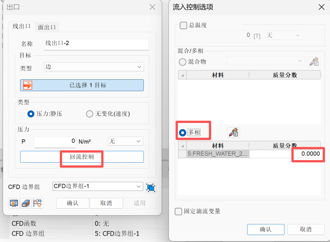 答:出口边界有“回流控制”菜单,定义了就能控制,没定义就没有。