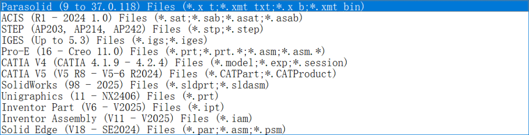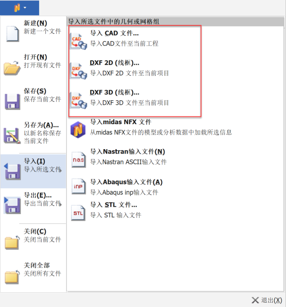 NFX支持导入的几何格式如下: