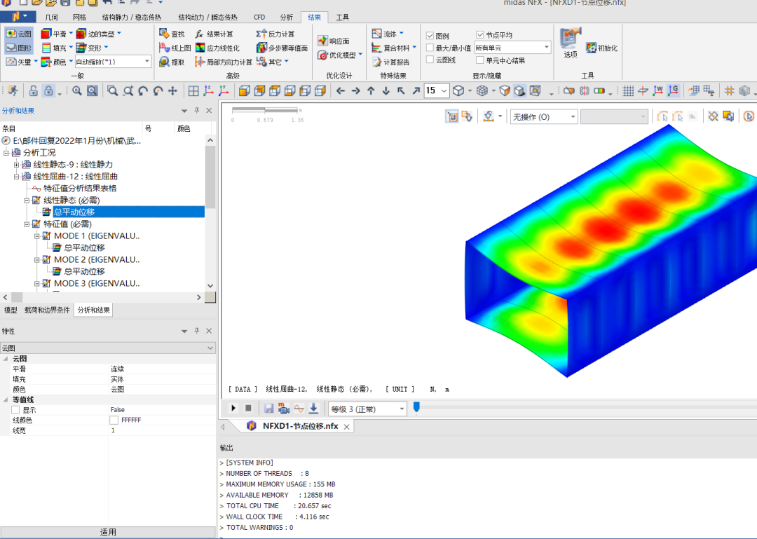 答:该提示警告:“边界条件……将被忽略“。是因为在侧边共线的地方相当于有2个边界条件,所以会提示将忽略其中一个。这个警告不用管,大部分模型分析的时候都有。