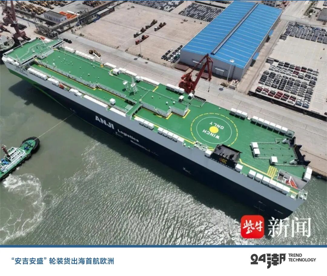 比亚迪和上汽是 “造船出海” 的典范。今年5月,上汽安吉物流打造的滚装船 “安吉安盛” 轮装载3850辆汽车发往欧洲。