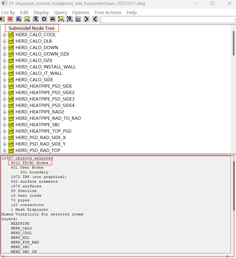 在List By中选择Submodel.Id(即以节点名称显示),点击模型树上面Submodel Node Tree,在下面显示框中会显示模型详细信息,包含节点数量,注:如果想要模型计算快一些,尽量控制节点数量在1000个以内,对于大模型最好也不要超过10000个