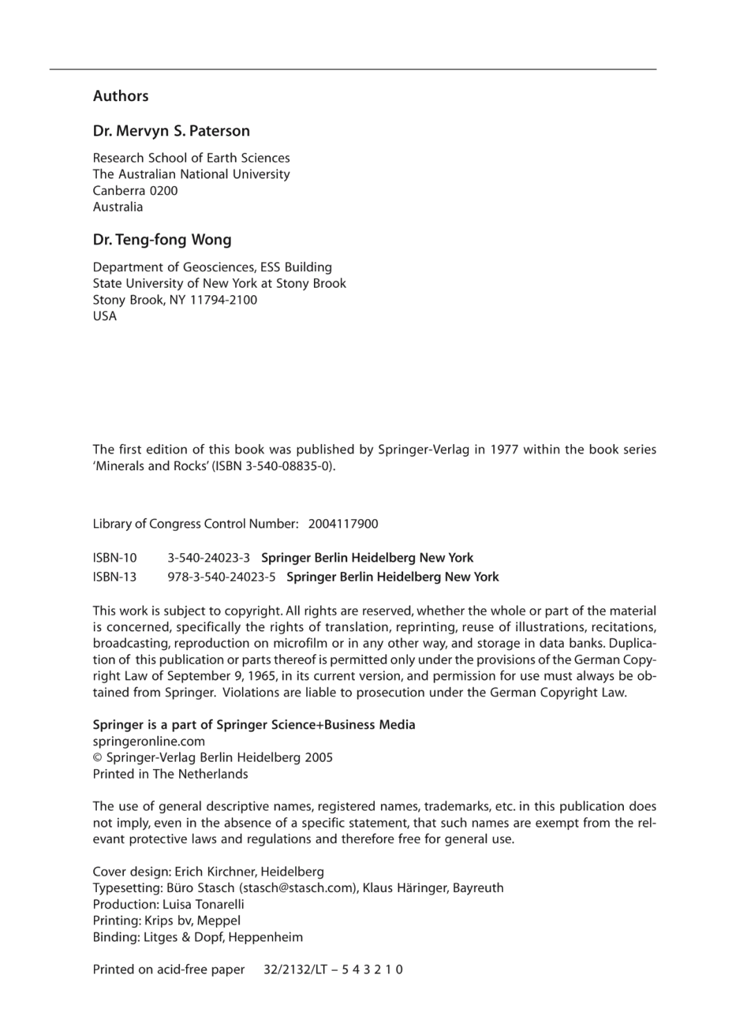 Experimental Rock Deformation – The Brittle Field